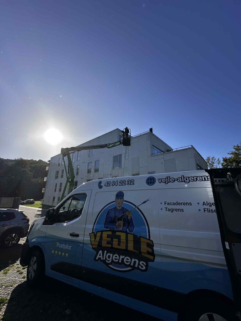 Vi bruger skånsom højtryk til at rense facaden effektivt. Det fjerner snavs, alger og belægninger med det samme – i modsætning til algebehandling, som virker over tid. - Vinduesvask er nødvendigt